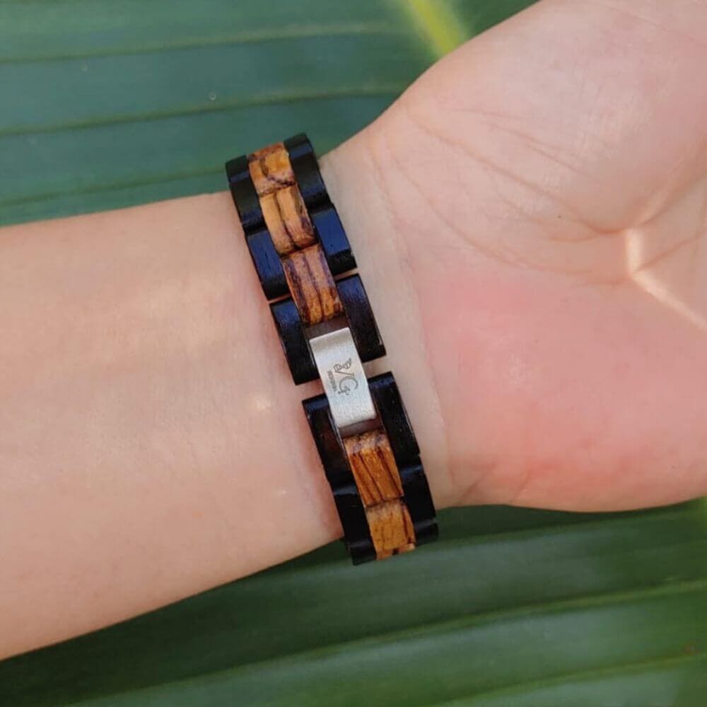 ⌚Strong and durable wooden housing. ⌚Clasp: Double buckle. ⌚Weight: 28 g. ⌚Mirror material: Hardlex. ⌚Band material: Zebra wood + Ebony. ⌚High-quality Miyota mechanism. ⌚Comfortable to wear. ⌚Runic Circle.