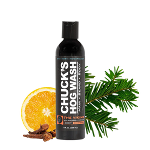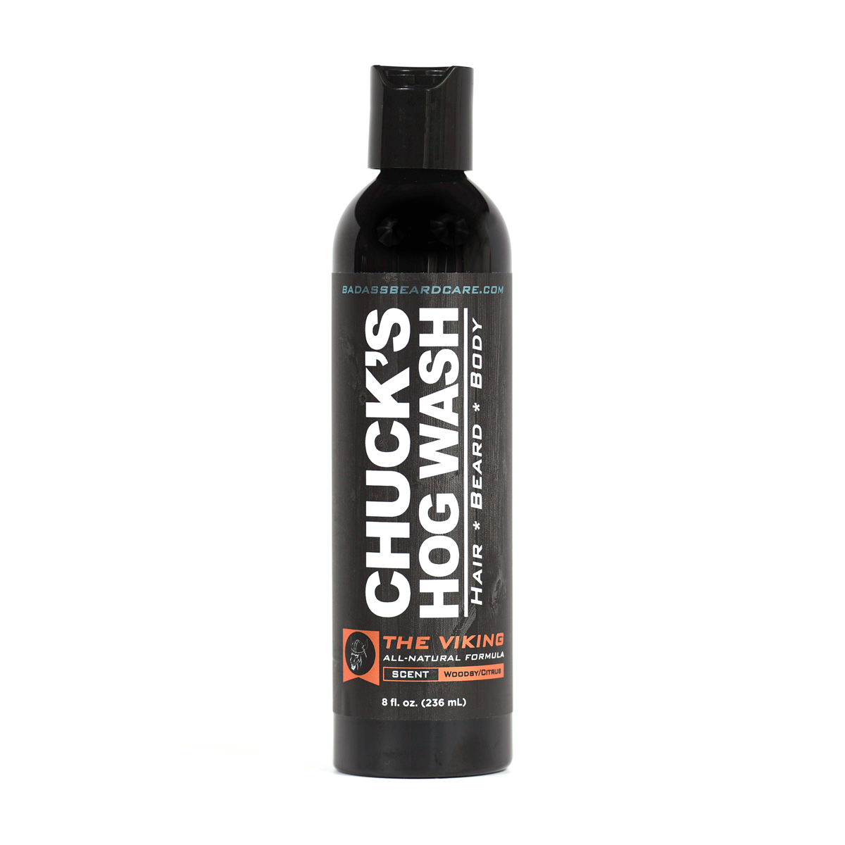 Chuck's Hog Wash is an all natural formula and is available in 13 of our Badass scents that we offer our beard oil and beard balm in! It is an all-in-one wash for the bearded man and can be used on beard, skin, and hair! It's made with 100% natural ingredients to be gentle on hair and skin and leave your beard softer than its ever been and is suitable for daily use!