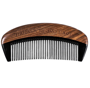 What could be better than our Sandalwood Beard Comb and our Ox Horn Beard Comb you ask? This new beard comb using both! The spine of the comb is made with hand-carved Australian Sandalwood, and then sanded and engraved. The teeth of this fine-tooth comb are hand-carved, shaped, sanded, and polished from a solid piece of horn. All of this to make each comb unique and truly Badass!