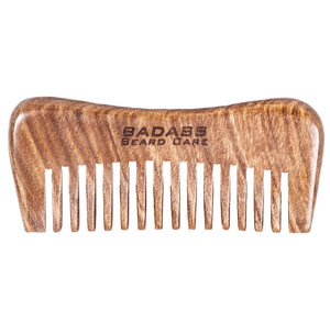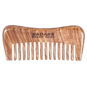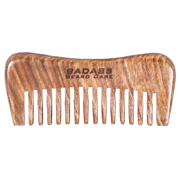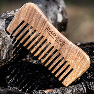 Our wide-tooth wood beard comb is hand-carved from Australian Sandalwood, sanded, and engraved. It has a subtle rich woodsy scent that blends well with all of our oils and balms. This comb is a must-have for curly and dense beards to untangle, smooth, and spread beard oil and balm to help sculpt a beard masterpiece. The comb itself is very thick and fits perfectly in your hand. Using the comb with beard oil and balm will bring out the deep colors and beautiful wood grain. This comb is truly a work of art!