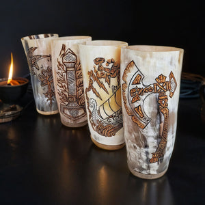 🍻 SHOW OFF YOUR COMPLETELY UNIQUE SET (4) - The secret ingredient of a finely crafted mead horn is the care that is put into the construction. Our artisans have been fashioning drinking horns for generations. Each of our horn cups are hand-selected, hand-cut, hand engraved and hand-polished to near-perfection (we say "near" because as handmade items, no horn is entirely perfect).