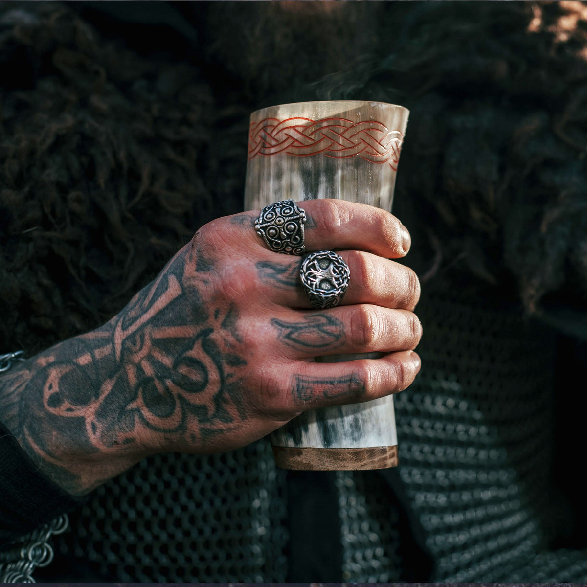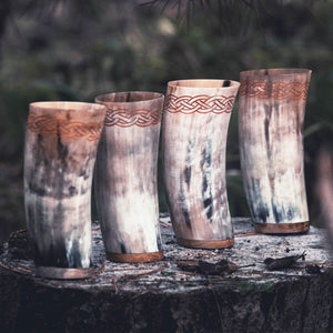 🍻 HAND ENGRAVED CELTIC KNOTS - Each of the four horns included in the set is hand engraved with a beautiful Celtic knot design around the rim of the horn. Then the engraving is carefully filled will red dye, giving it a unique Viking styling worthy of a true chieftain!