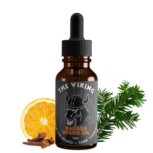 The Viking Badass Beard Oil has been treasured by the keepers of of Valhalla for centuries and given as a gift to only the most deserving of the bearded warriors to grace those halls. Well no more! We won the rights to this glorious scent from Odin himself in a game of high stakes poker. What could we have wagered for such high stakes? Every single one of our red beard hairs, thats what. We love our customers that much! This unique refreshing blend is clean and outdoorsy, with an uplifting touch of citrus and spice. It's a scent fit for a warrior and a lover!