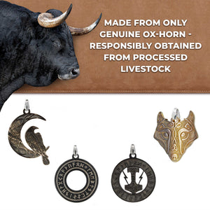 🕯️ Authentic Ox Horn Pendant: Handcrafted from genuine ox horn, each pendant boasts a unique pattern of brown hues, ensuring that no two pieces are exactly alike. The natural variations in the horn add to the authenticity and charm of this Viking-inspired piece.