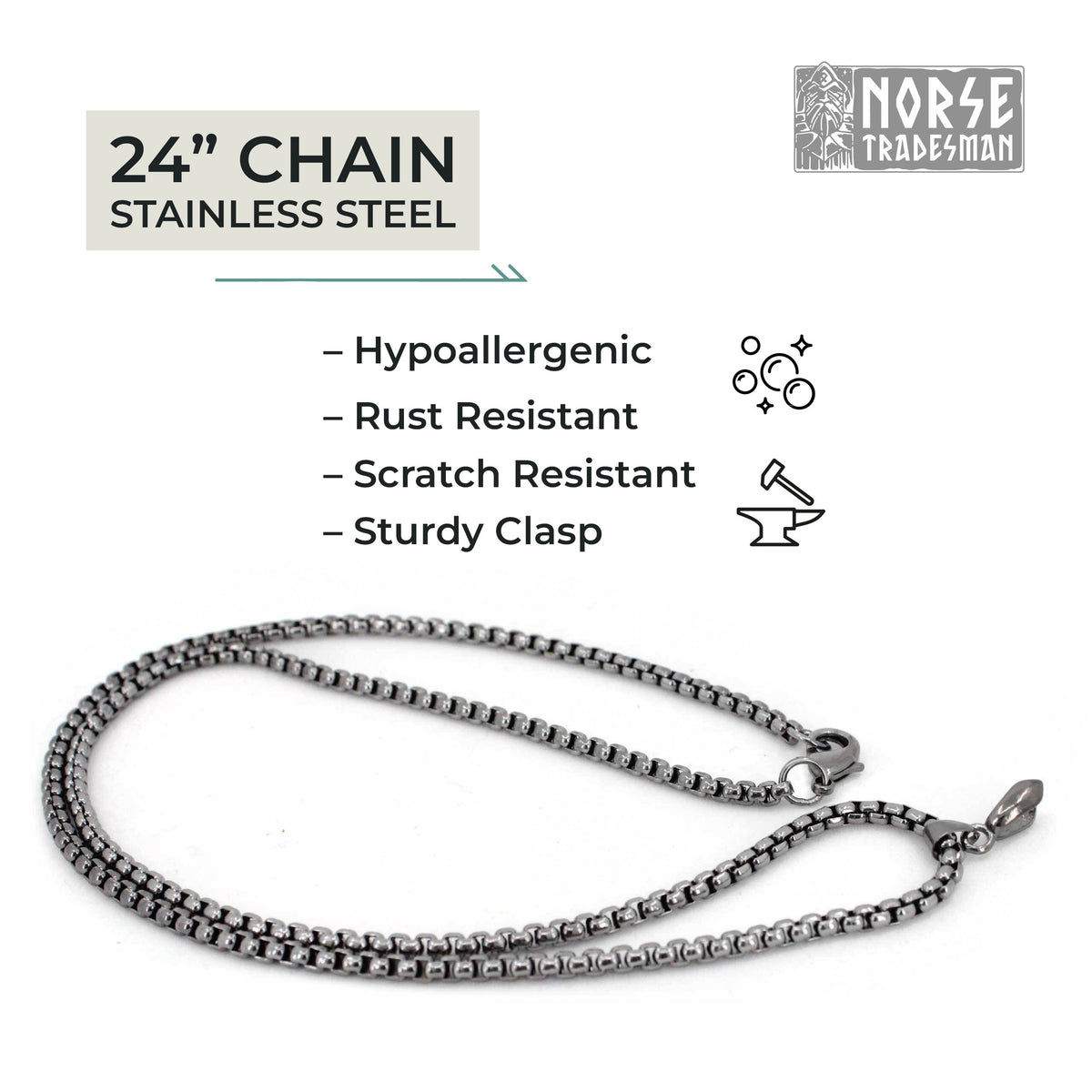 🕯️ Premium Chain & Clasp: The pendant is paired with a 24-inch electroplated anti-rust stainless steel box chain, combining durability with a polished, medieval aesthetic. The sturdy chain perfectly complements the pendant's striking design.